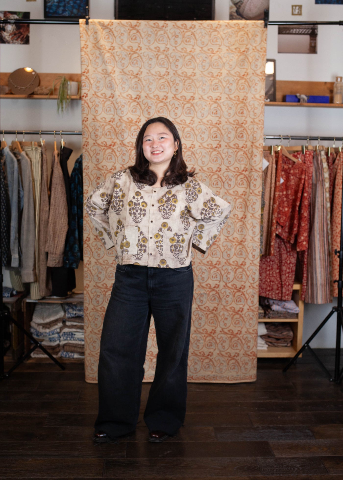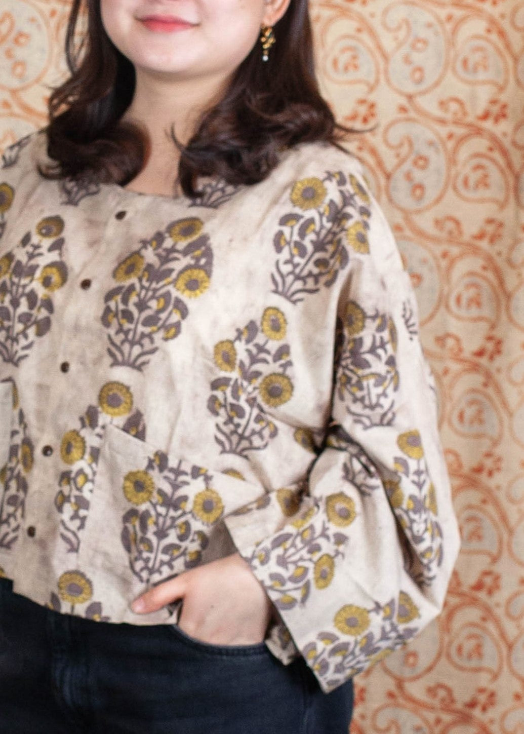 Bolero COCHIN - Coton bio - Imprimé SURYAMUKHI (tournesol) - XS/S
