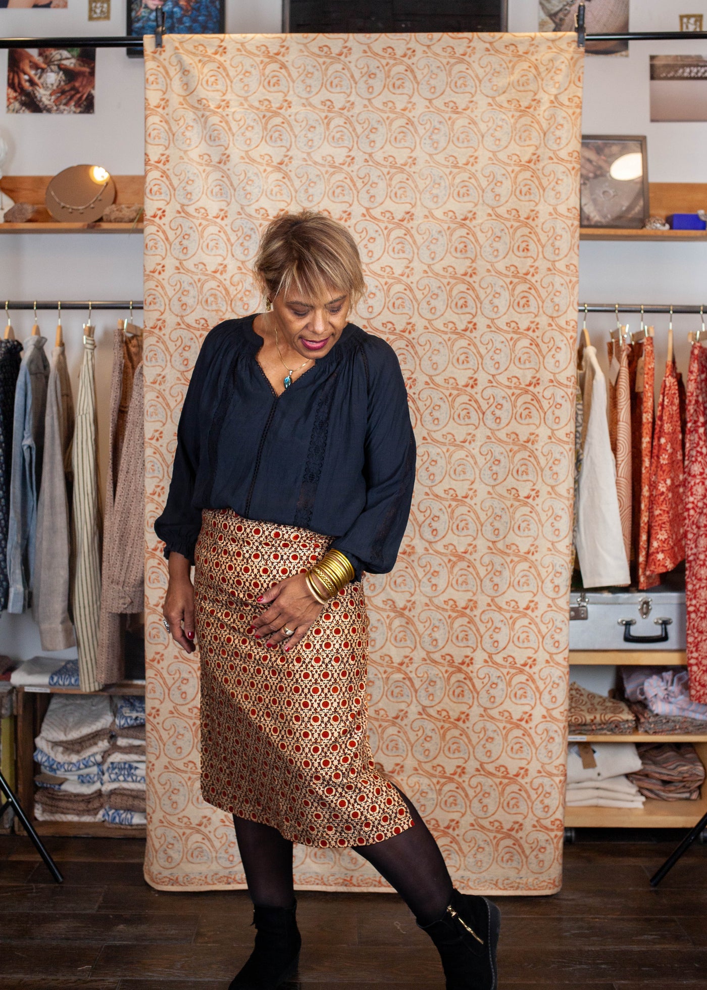Jupe CHRYSTEL - Coton bio - Imprimé KENDR (centre) En solde