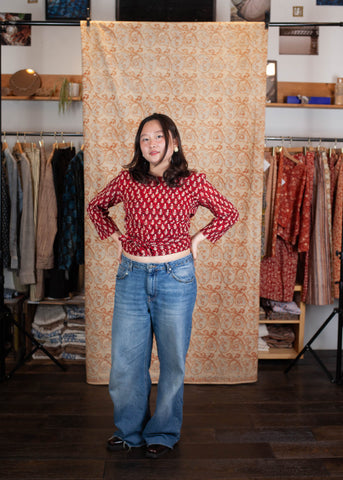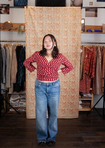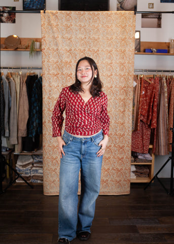 Le top Benares est l'un de nos coups de cœur et notre best-seller depuis 2018. Vous pouvez le porter de différentes manières : en version dos nu ou décolleté, le nouer sans tour ou avec un tour supplémentaire pour ajuster l’échancrure, ou même en petite veste pour couvrir vos épaules en été… Nous l’avons validé, et nous avons du mal à nous en lasser !