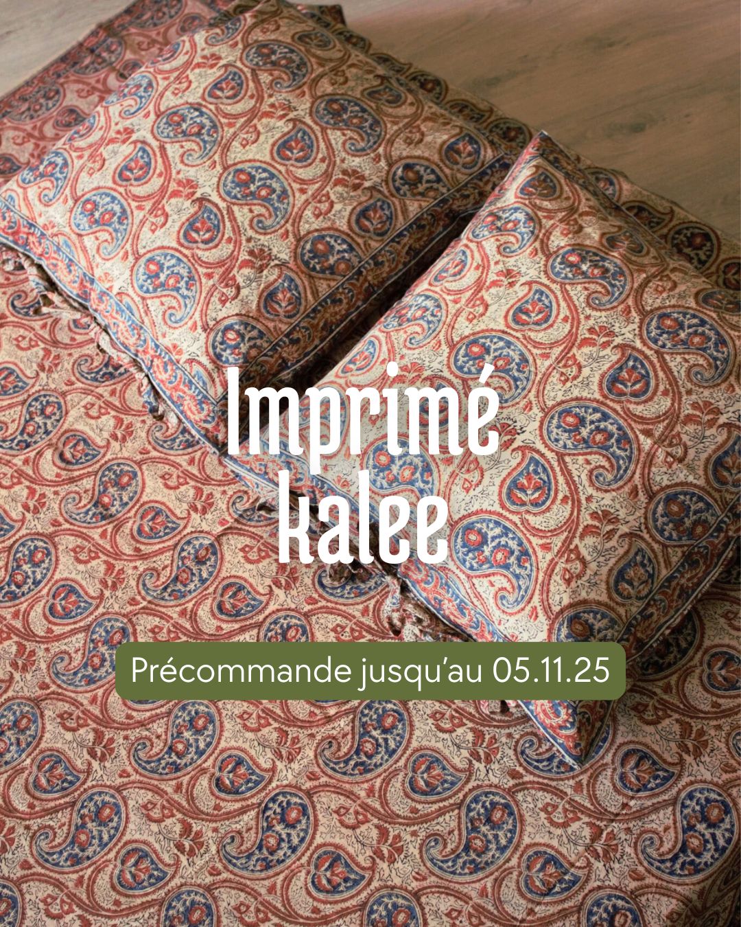 N.B. En précommande jusqu'au mercredi 5 novembre 2025 inclus - la production des sets de lit sera ensuite lancée. Le temps de développement peut prendre jusqu'à 5 mois. Nous vous tiendrons au courant des avancées avec les artisans imprimeurs.